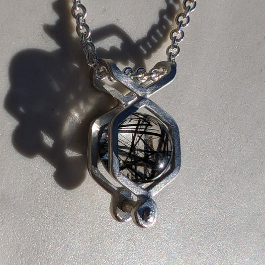 Tourmalinated Quartz Sphere Hex Rivet Pendant